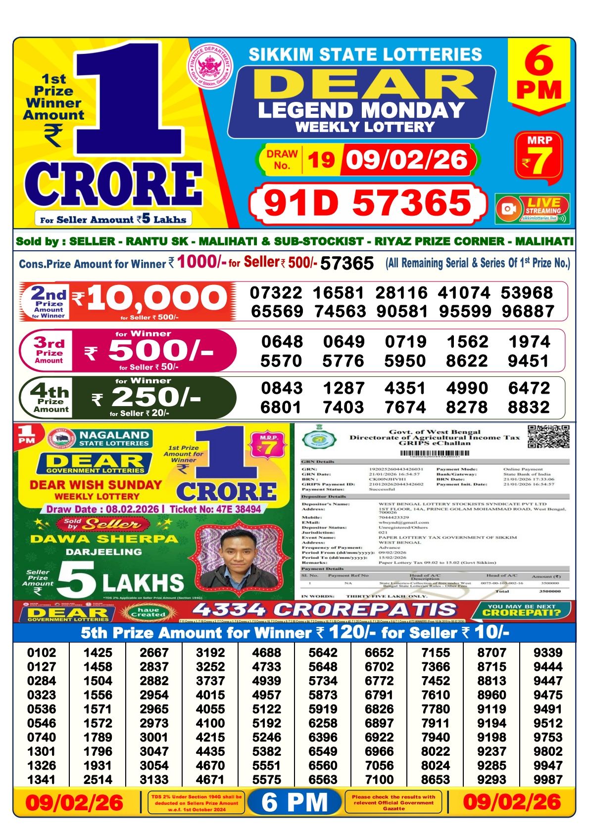 Sikkim Lottery Sambad Today 09-02-2026 6PM Result