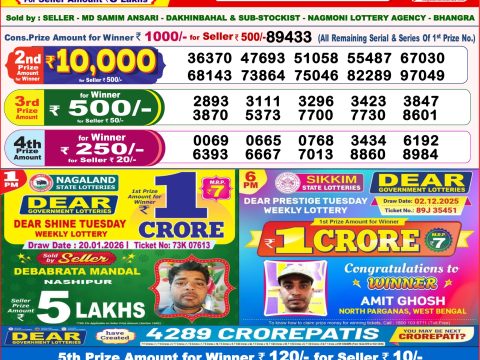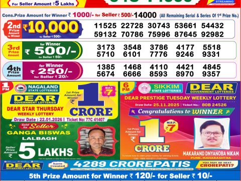 The highly anticipated Dear Lottery Result for the 8 PM draw on 21.01.26 has been officially declared! Conducted under the supervision of the Nagaland State Government and published through Lottery Sambad, this evening draw is one of the most awaited lottery events in India.Participants can now check the winning numbers below and compare them with their ticket for today’s draw. The Dear Lottery Chart is a valuable tool for all regular players—it shows previous draw trends and winning patterns that can guide future picks. Today’s update in the Dear Lottery Chart includes the full prize structure, from the first prize to the consolation prize.Whether you’re a first-time player or a regular enthusiast, referring to the updated Dear Lottery Chart helps you stay informed and improves your game strategy. Many lucky winners in the past have tracked their success through consistent review of the Dear Lottery Chart, gaining insights from past draws.If your ticket number is among the winners, ensure you follow the official claim process. For prizes above ₹10,000, winners must submit claims within 30 days to the designated lottery office along with ID proof and the original ticket.Stay connected with Lottery Sambad and check this space daily for the latest results, tips, and full Dear Lottery Chart analysis. Best of luck for your next draw—and congratulations to today’s winners of the 21.01.26 8 PM Dear Lottery Result!