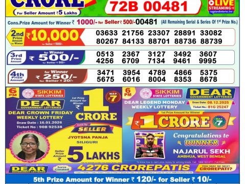 The eagerly awaited Dear Lottery Result Today for the 1:00 PM draw is now live! Conducted under the supervision of Nagaland State Lotteries, this daily draw continues to create millionaires across the country. Participants can now check the complete winning numbers and updates right here on this page.