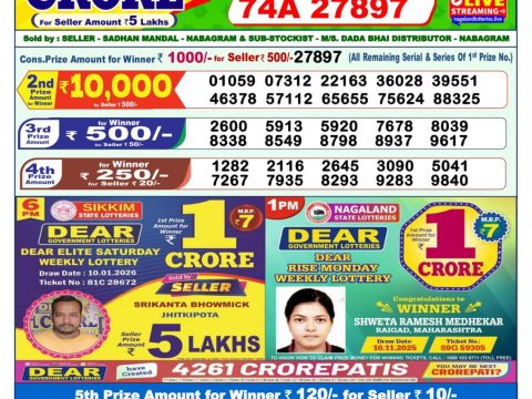 The eagerly awaited Dear Lottery Result Today for the 1:00 PM draw is now live! Conducted under the supervision of Nagaland State Lotteries, this daily draw continues to create millionaires across the country. Participants can now check the complete winning numbers and updates right here on this page.