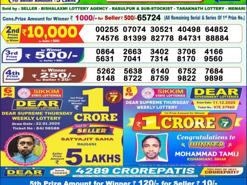 The eagerly awaited Dear Lottery Result Today for the 1:00 PM draw is now live! Conducted under the supervision of Nagaland State Lotteries, this daily draw continues to create millionaires across the country. Participants can now check the complete winning numbers and updates right here on this page.